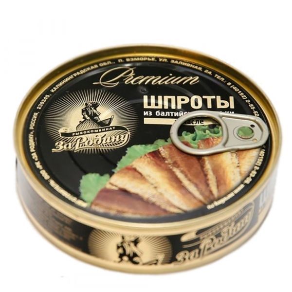 Шпроты в масле «За Родину» производятся из балтийской кильки. Благодаря