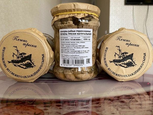 Печень трески натуральная, стеклянная банка