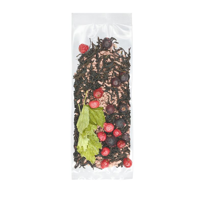 Состав: Чай черный байховый цейлонский, лист черной смородины, ягоды чёрной и красной смородины сублимированные, гранулы смородинового сока (натуральный сок черной смородины, сахар), витаминный комплекс (витамины: А, В1, В2, В3, В5, В6, В9, В12, С, Д3, Е, К1, Биотин), с ароматом смородины.